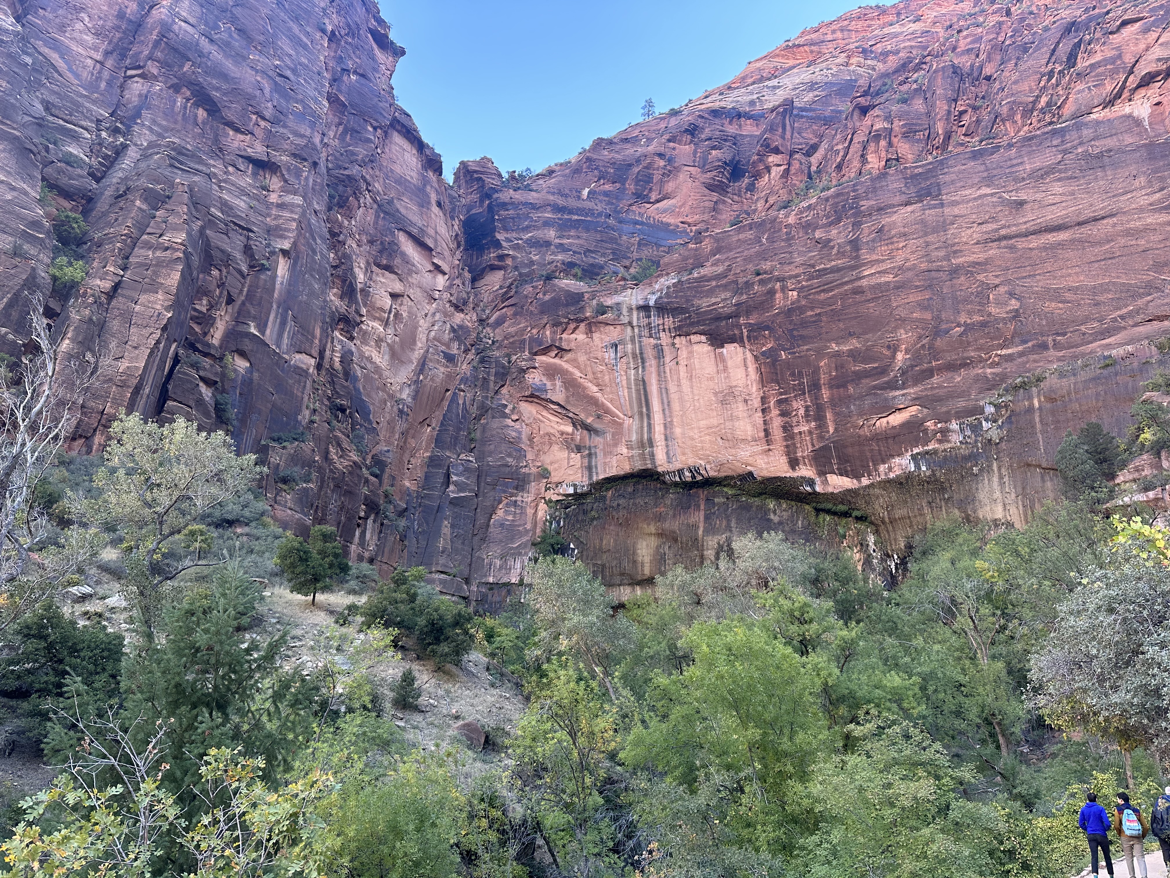 Even in late October the Zion Canyon is green which is nice against the backdrop of the red sandstone cliffs. |